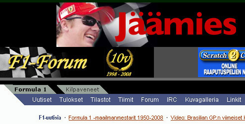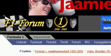 Niin... ja kun tuo on 10-vuotisjuttu, niin ehkä Häkkiselläkin on tuona aikana ollut jotain roolia! :thumbup:Näyttäisi ehkä paremmalta jos Heikki ja Kimi olisi vierekkäin tuossa 10v-bannerissa, niinkuin tuossa alkuperäisessä on..