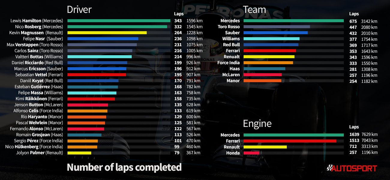 8. Hamilton Mercedes W07 1: 26,295 2,818 99 ● PIT