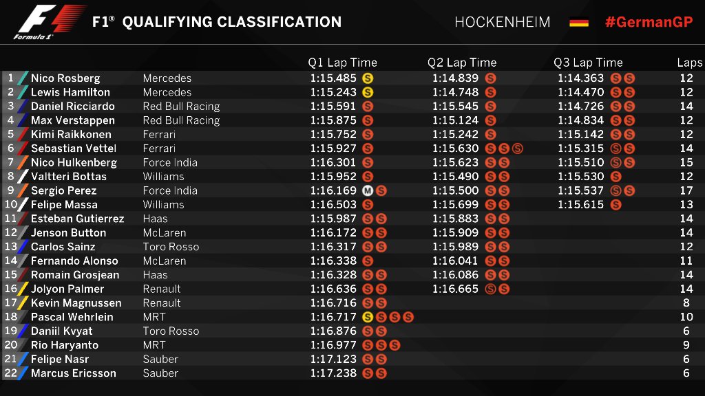 Formula 1 - 2016 - Saksan GP - Aika-Ajot