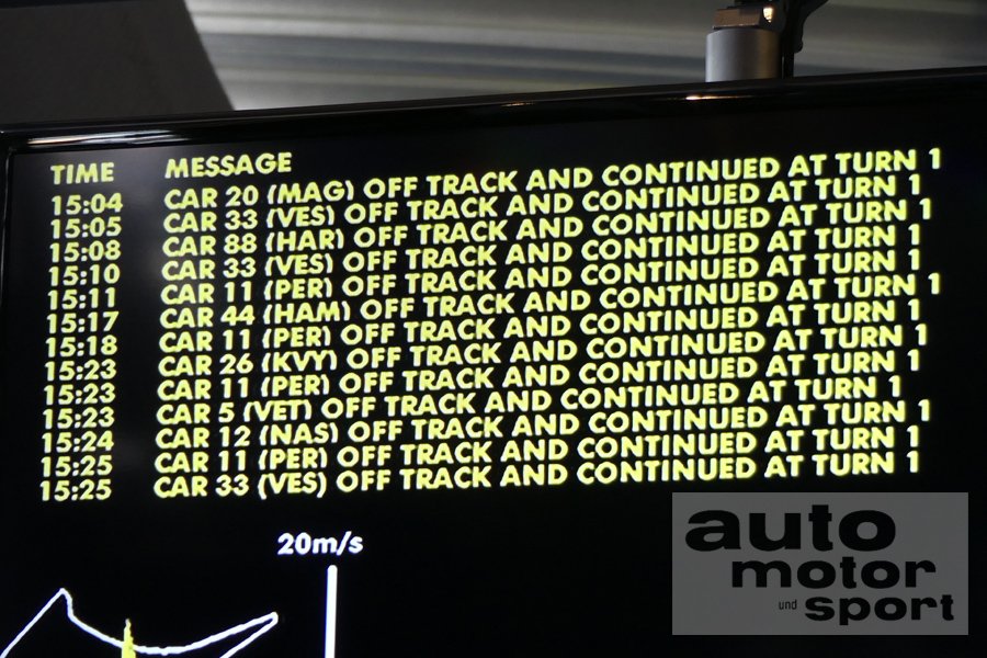 Vähemmän yllättäen ykkösmutkassa, jossa se on aiempina vuosina ollut erikseen sallittua radallepalaamisrajaan asti. En ole katsonut lähetyksiä tänään, joten en tiedä onko tänä vuonna samoin, mutta oletan että on.Jaahas rata rajoja on taas ylitelty :