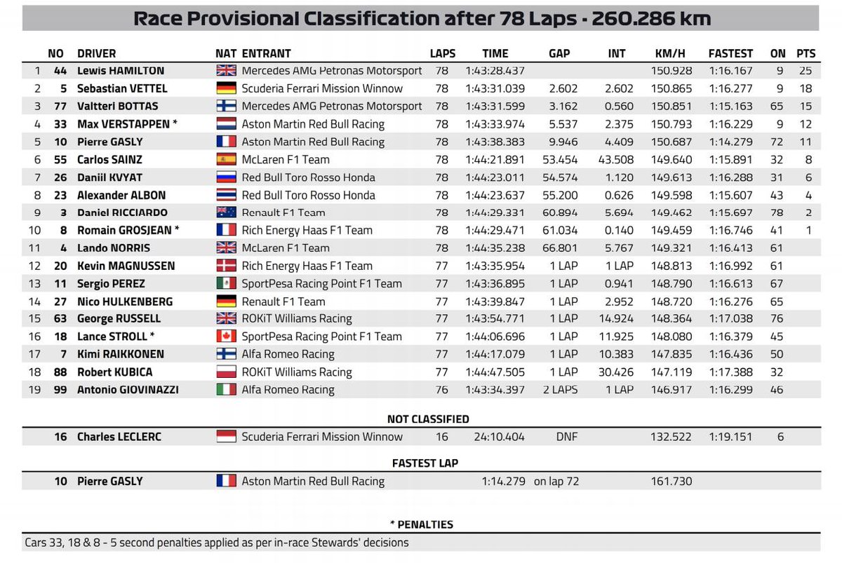 Tuomaristolla on onneksi huumori päällä tylsässäkin kisassa. Verstappen kolaroi Bottasin pois pelistä ja sai saman rangaistuksen kuin Grosjean vai kuka lie, joka leikkasi varikolta poistuessaan vähän valkoisen viivan päältä. Ja toki se Giovinazzin täysin merkityksetön koheltaminen Kubben kanssa jossain kisan perällä toinen esimerkki tästä.