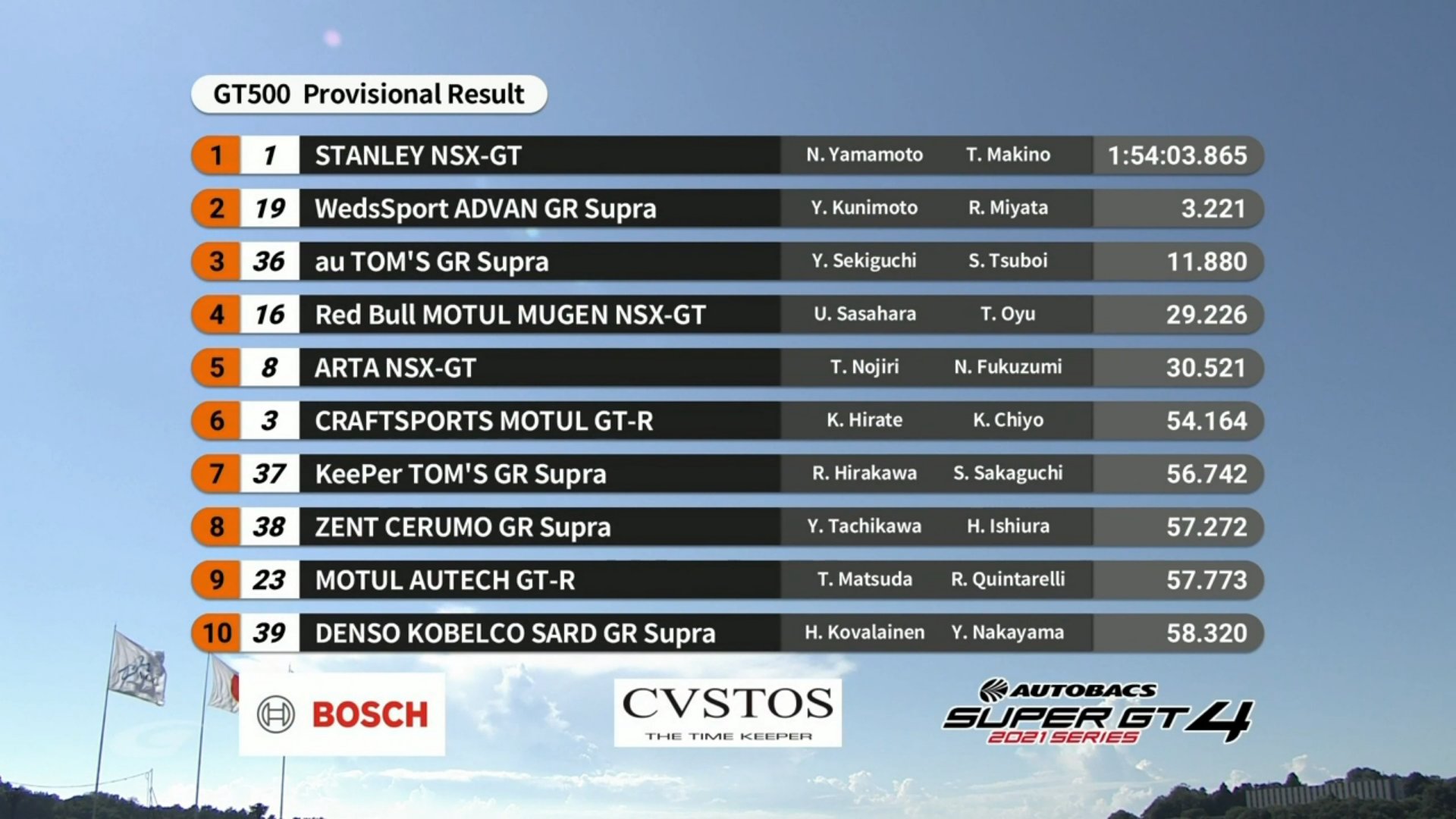 Krohnin autokunta, #24 BMW M8 GTE, oli lopulta luokkansa toinen, alle sekunnin päässä voittaneesta Corvetesta (#3). BMW numerolla 25 oli luokan kolmas ja toinen Corvette neljäs. Mukana ollut Porsche jätti leikin kesken jo alussa.