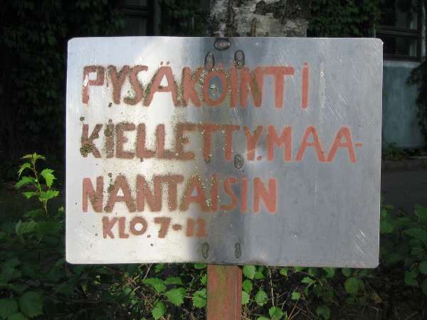 Aika Ehdoton kielto.Ei tällä hetkellä kovinkaan ajankohtainen kielto, mutta kielto kuitenkin. Havaittu ja kuvattu iltaliikunnan aikana.