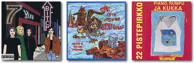 Nyt 7 Year Bitch: Gato Negro, sit The 13th Floor Elevators: His Eye is on the Pyramid ja 22 Pistepirkko: Piano, rumpu ja kukka
