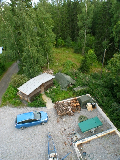 Tuli samantein sellanen pilkki, ettei tarvinnut paljon asetella. Kunhan toi suunnilleen samalle tontille niin ylettyi varmasti sutimaan päädyn.