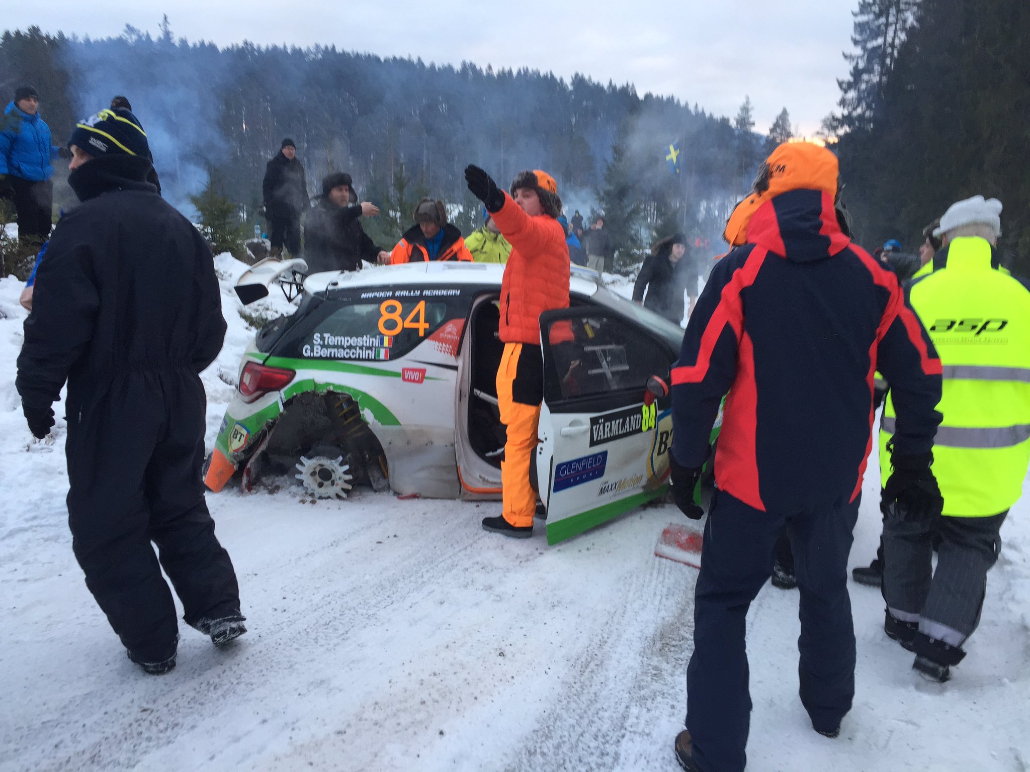 Meeke taas ongelmissa, saa nähdä saako katsojat auton takaisin tielle.