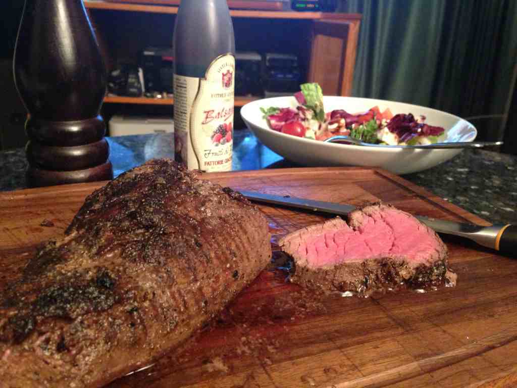 Grillailtiin eilen hevosen ulkofilettä. Ois varmaan pitänyt ottaa kuva kypsyysasteesta (medium miinus) Renen ihmeteltäväksi. :p
